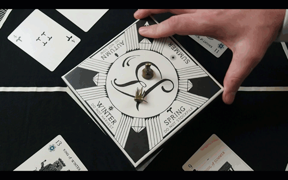 A set collection game perfectly balanced for two players that plays up to four. In the game you are collecting cards out of one of the four fields, attempting to clear fields and collect valuable cards. However, the box in the center of the game turns during play, changing the seasons and what actions you can take.